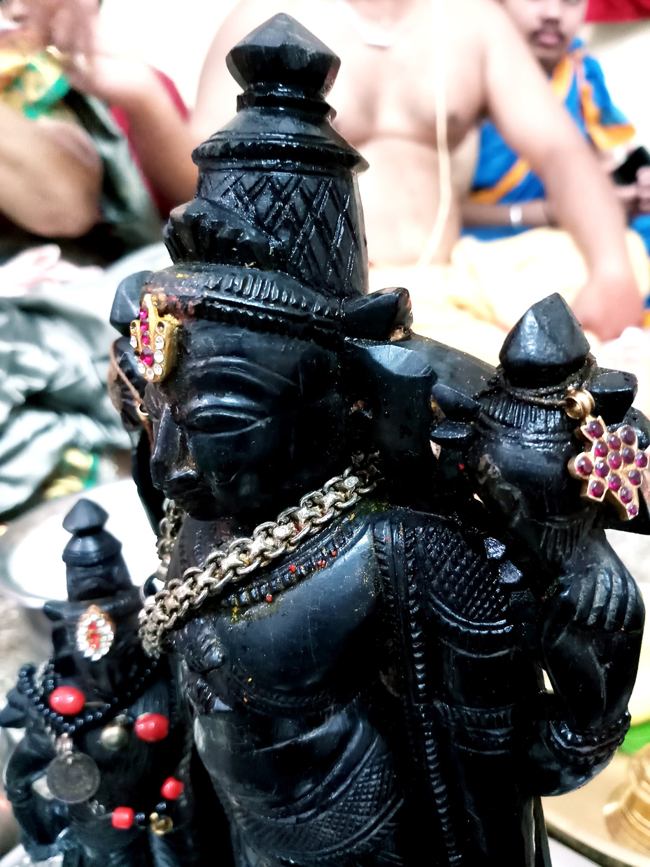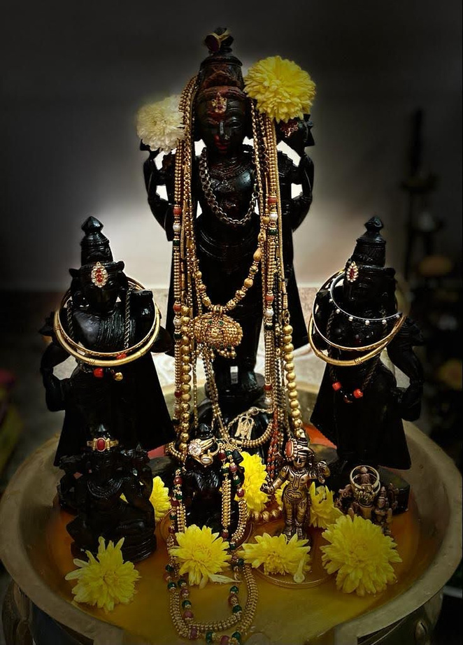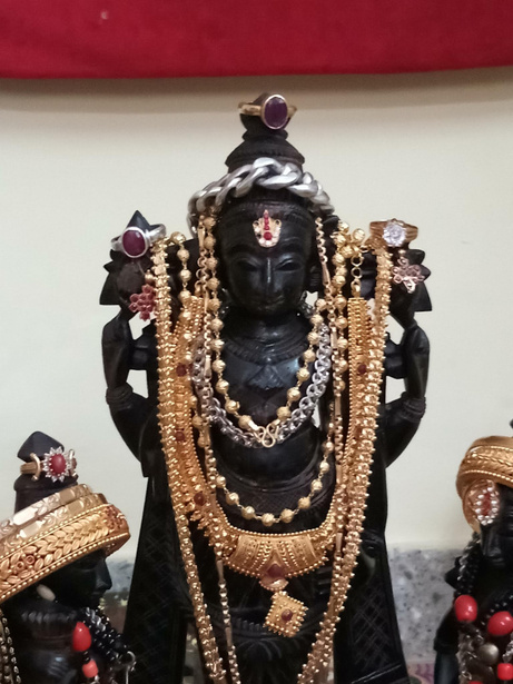 ಈ ವೆಂಕಟರಮಣ ವಿಗ್ರಹ ಎಡಬದಿ ಮಹಾಲಕ್ಷ್ಮಿ ಬಲಭಾಗದಲ್ಲಿ ಪದ್ಮಾವತಿ ವಿಗ್ರಹಗಳನ್ನು ಹೊಂದಿದೆ. ಮುಂದೆ ಆಂಜನೇಯ, ಗಣೇಶ, ಲಕ್ಷ್ಮಿ, ರಾಮ, ಮುಂತಾದ ದೇವರುಗಳ ವಿಗ್ರಹಗಳು ಮಣೆಯಲ್ಲಿ ಎಲ್ಲಾ ದೇವರುಗಳನ್ನು ಅವರವರ ಸ್ಥಳಗಳಲ್ಲಿ ಕೂರಿಸುವಂತೆ ವಿನ್ಯಾಸ ಮಾಡಿರುವುದು ಸಹ ಒಂದು ವಿಶೇಷ. ಬೇರೆ ಸ್ಥಳದಲ್ಲಿ ಕುಳ್ಳಿರಿಸಿದರೆ ಅದು ಕುಳಿತುಕೊಳ್ಳುವುದಿಲ್ಲ. ಇಂತಹ ಅದ್ಭುತವಾದ ದೇವರುಗಳನ್ನು ವೆಲ್ವೆಟ್ ಬಟ್ಟೆಯಲ್ಲಿ ಸುತ್ತಿ ದೊಡ್ಡ ಬೆಳ್ಳಿ ತಟ್ಟೆಯಲ್ಲಿಟ್ಟು ಶ್ರೀಯುತ ಬಾಲಗಾರ್ ಶ್ಯಾಮರಾವ್ರವರಿಗೆ ಕೊಟ್ಟು, ಸ್ವಾಮಿ ನೀವೆಂಥಾ ದೈವ ಭಕ್ತರು ಯಾರಿಗೋ ತಲುಪಬೇಕಾದ ಈ ವೆಂಕಟರಮಣ ನಿಮಗೆ ತಲುಪಿದೆ. ನಿಮ್ಮ ಮೇಲೆ, ನಿಮ್ಮ ಕುಟುಂಬದವರ ಮೇಲೆ ಸಂಪೂರ್ಣ ವೆಂಕಟರಮಣನ ದಯೆ, ಅನುಗ್ರಹವಿದೆ ಎಂದು ಹೇಳಿ ವಿಗ್ರಹಗಳನ್ನು ಕೊಟ್ಟರು. ಇಬ್ಬರ ಕಣ್ಣುಗಳಲ್ಲಿಯೂ ಆನಂದ ಬಾಷ್ಪ ಉಕ್ಕಿ ಹರಿಯುತ್ತಿತ್ತು. ಮೈಯಲ್ಲಿ ರೋಮಾಂಚನವಾಯಿತು.